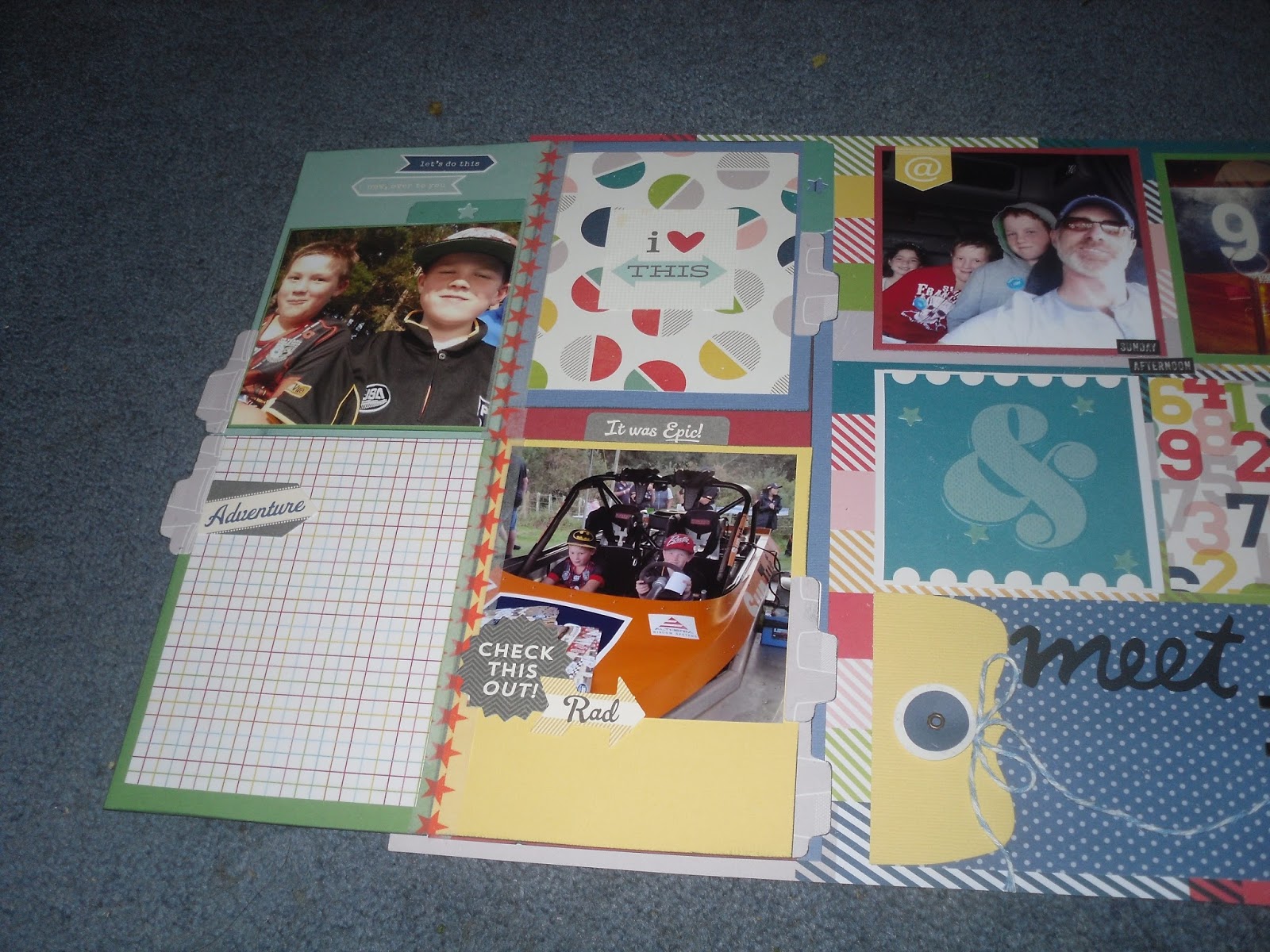 I found this great sketch on lets scrap sketches and thought it would be perfect for Xander's 9th birthday .  We did so many activities for it that I needed lots of space for multiple photo's. I wasn't able to load this up to the challenge, in case you go and look.  I really wanted to make this playful and fun....for a 9 year old!  Hope you like it.